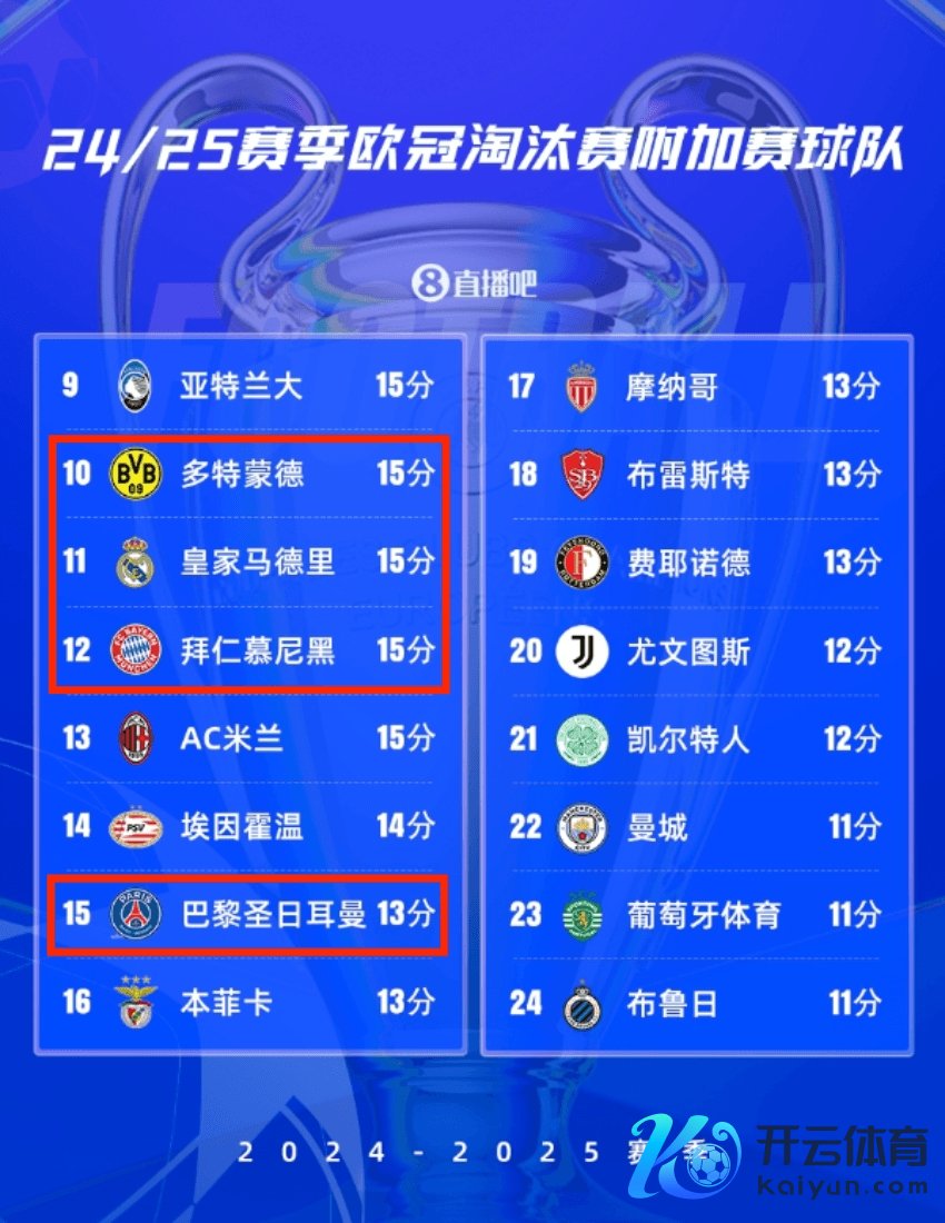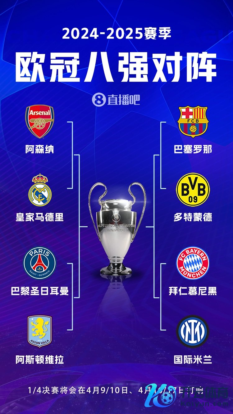 附加赛球队皇马、拜仁、多特、巴黎插足8强