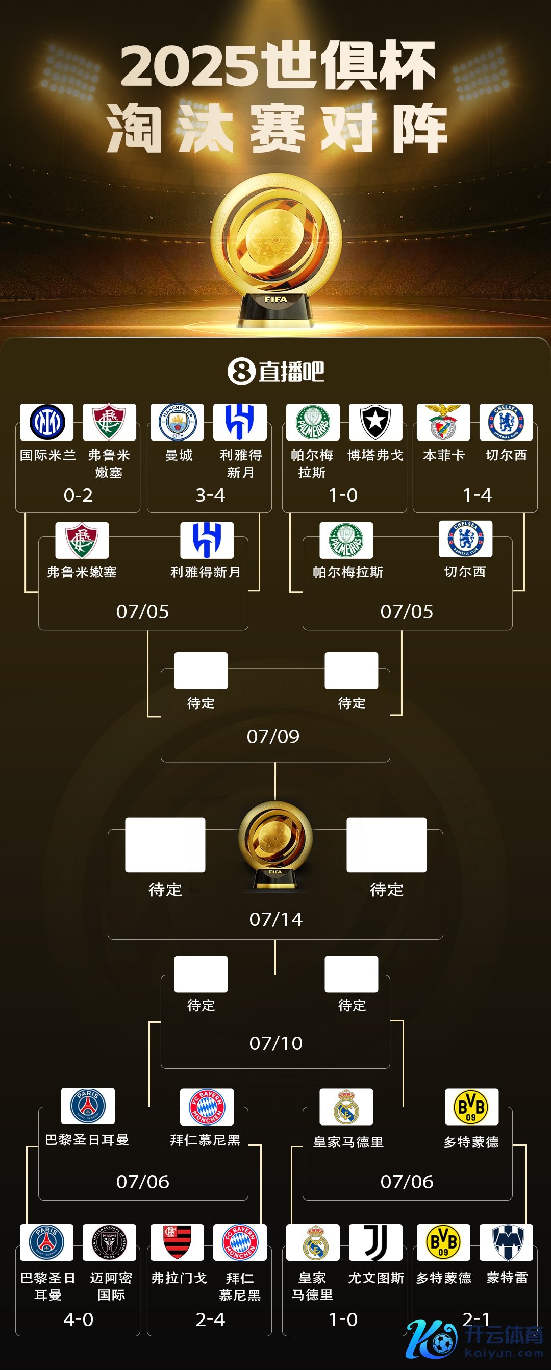 07月02日讯 世俱杯1/8决赛一起禁止,八强出炉。