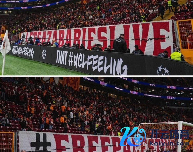 10月3日讯 《巴黎东谈主报》报谈,在加拉塔萨雷1-0战顺利物浦的欧冠比赛中,加拉塔萨雷球迷拉出好多横幅,声援巴勒斯坦巨匠。