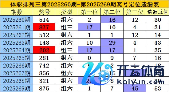 开奖转头:罗列三第2025269期奖号为:875,诸君号码遗漏值分歧为1、7、45,遗漏总值为53。