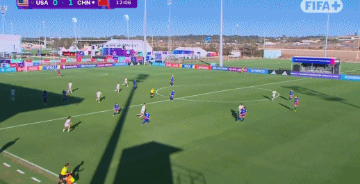 第43分钟,迪玛丽亚禁区前低射破门,U17好意思国女足2-1中国女足U17