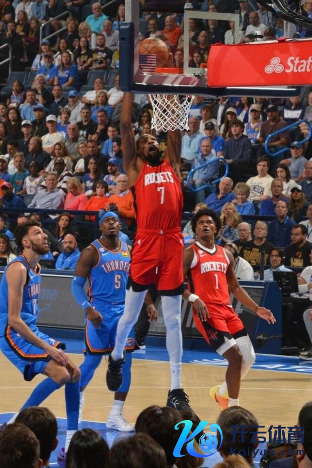 揭幕战,火箭队流程双加时以 124-125 不敌卫冕冠军雷霆队。杜兰特此役孝顺 23 分、9 个篮板和 3 次助攻,却在全场不雅众的应允声中六犯离场。