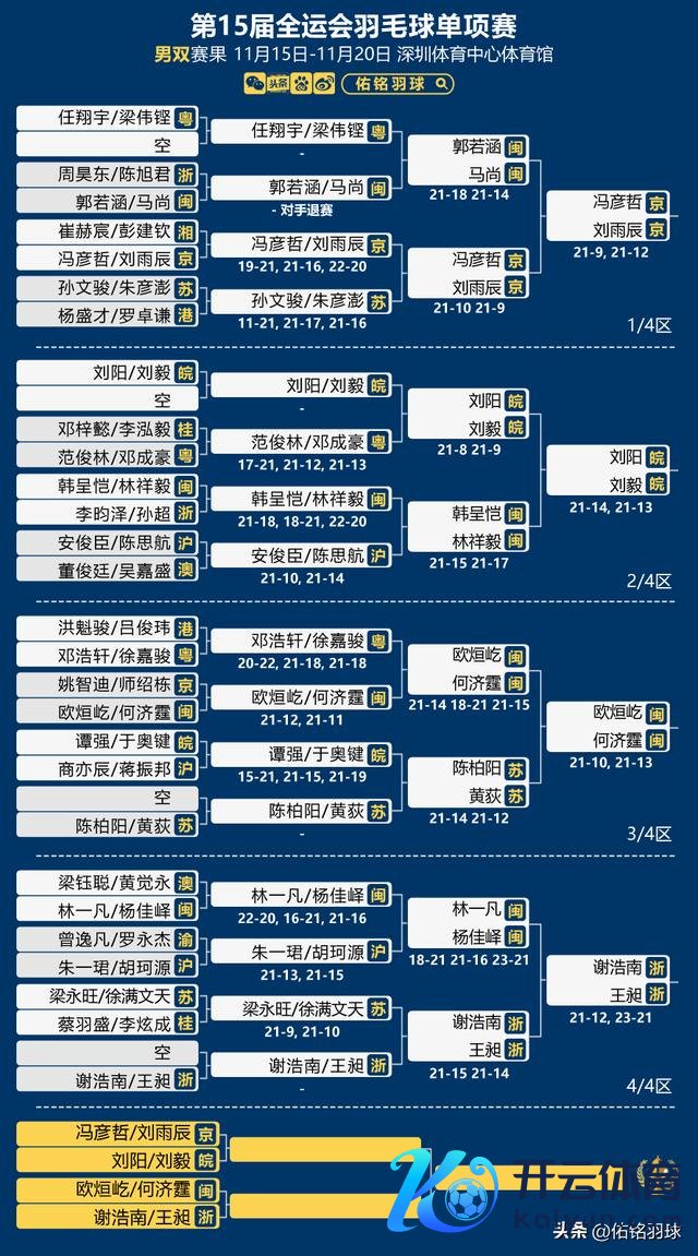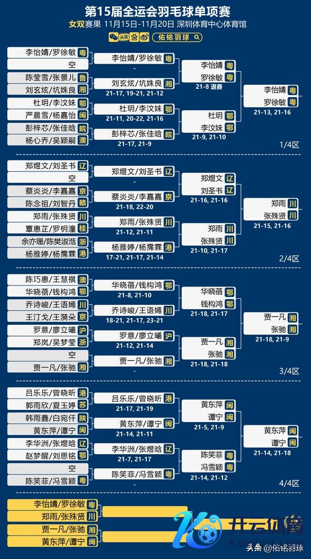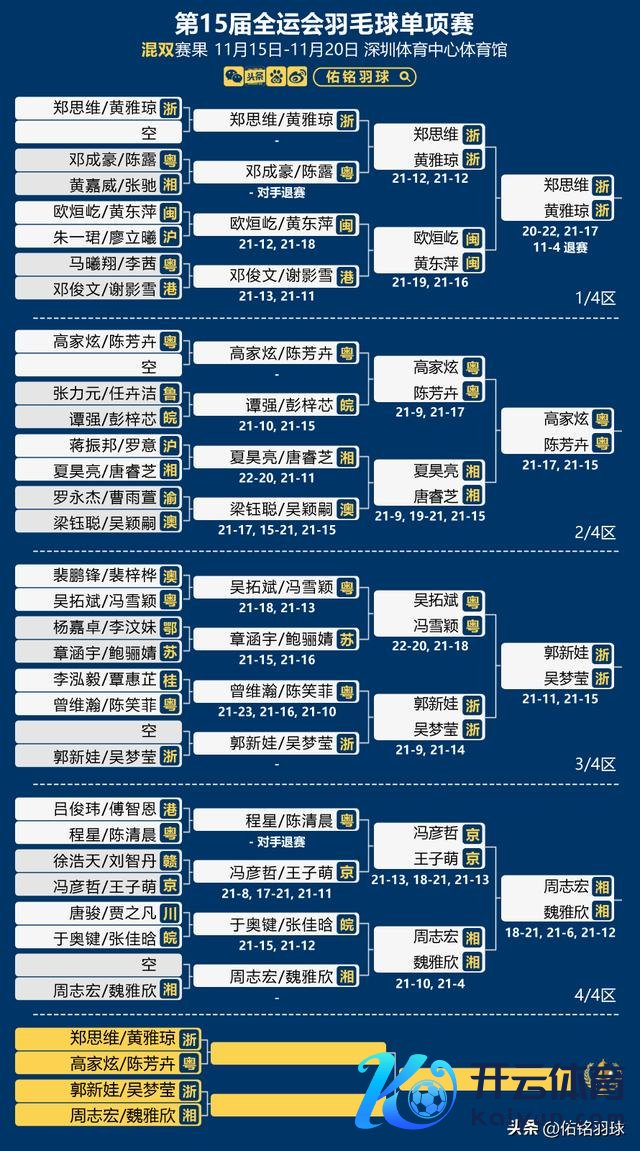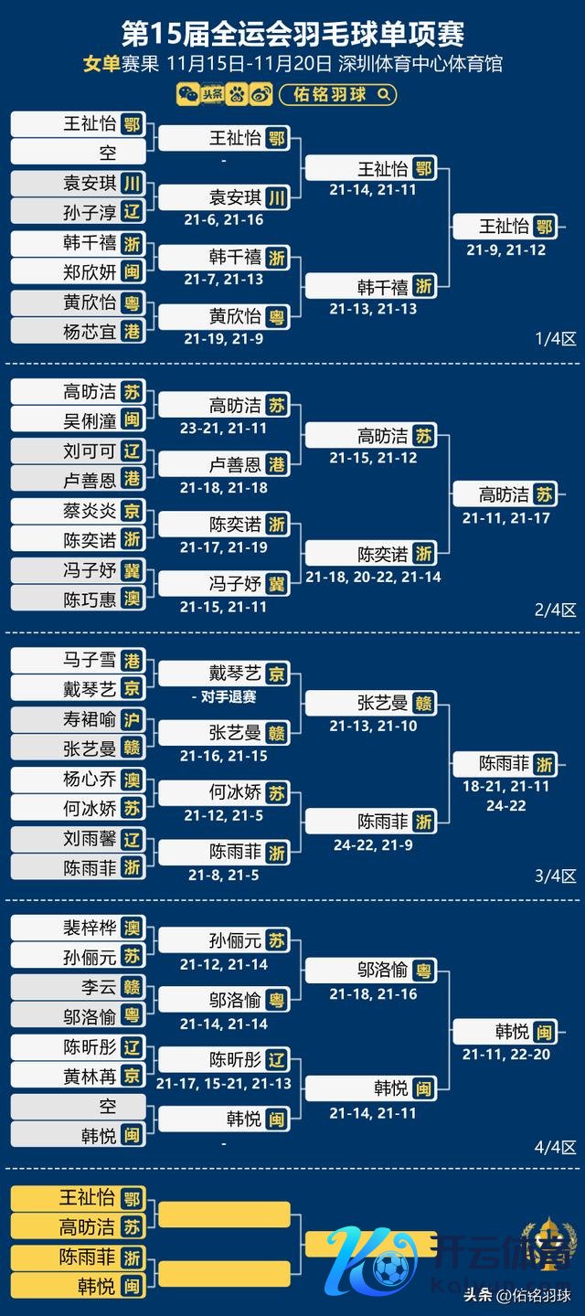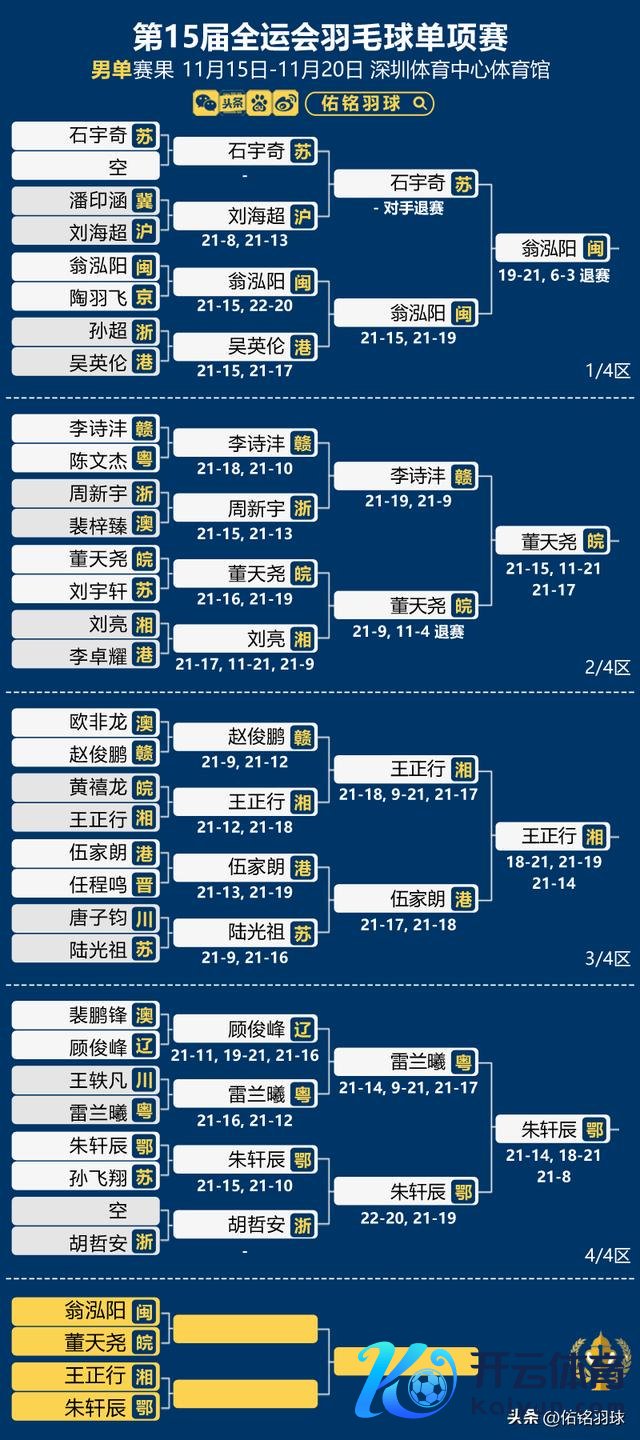 11月17日,第十五届羽毛球边幅适度1/4决赛的争夺,各单项4强名单出炉。