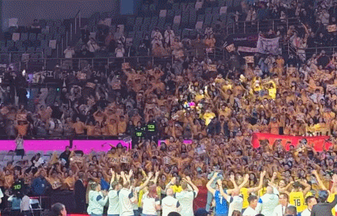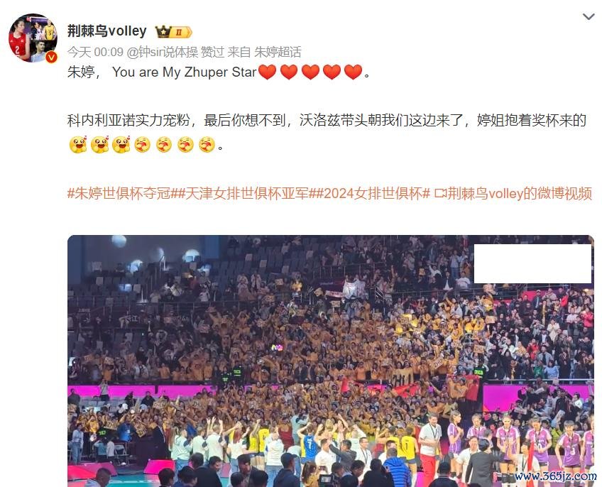 赛后当今的DJ为朱婷播放了super star这条无人不晓的歌曲,朱婷的粉丝们跟科内利亚诺全队总共歌咏,总共杭州球馆好像齐酿成朱婷后盾会,朱婷的队友们也成为她后盾会的一份子。
