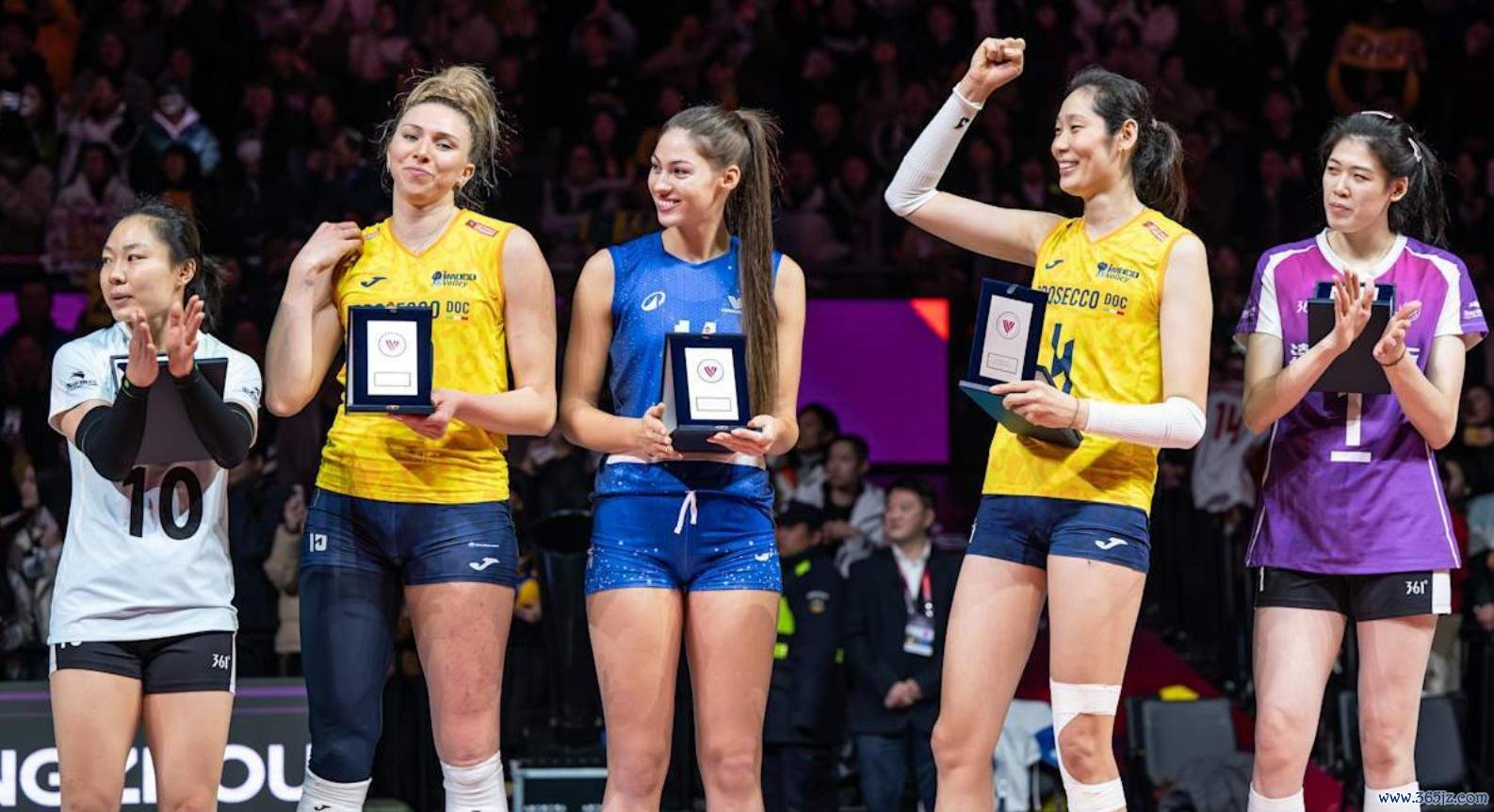 2024年世俱杯圆满边界,意大利朱门科内利亚诺夺冠,天津渤海银行亚军,意大利米兰季军。最好声势:朱婷、李盈莹、刘立雯、库尔塔吉奇、法尔、沃沃什、哈克(MVP)。【有三位是中国选手】