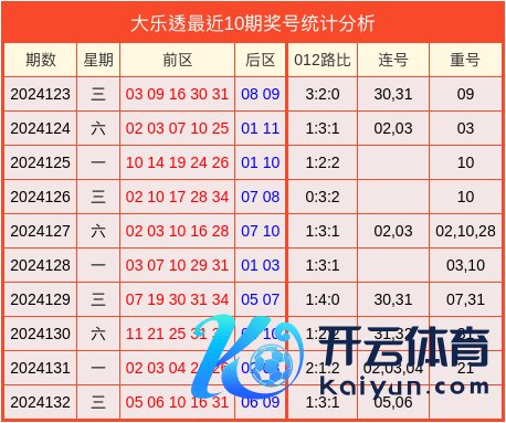 上期追思:大乐透2024132期开出奖号:前区05、06、10、16、31,后区06、09。