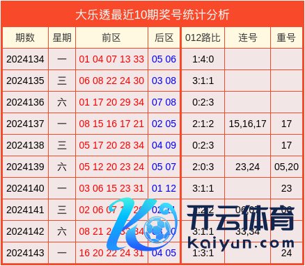 上期转头:大乐透2024143期开出奖号:前区16、20、22、24、31澳门买球网体育信息,后区04、05。
