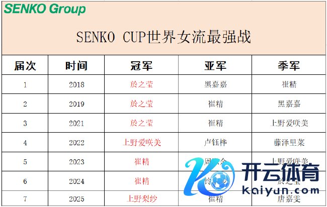 3月16日,2025SENKO CUP天下女流最强战决赛在日本东京战罢;最常年仅19岁的上野梨纱以半目逆转卫冕冠军崔精,首次参赛便斩获冠军;这亦然她继姐姐上野爱咲好意思之后再为日本夺得该项赛事冠军。前六届比赛於之莹三连霸、崔精两连冠,仅有上野爱咲好意思在第四届比赛为日本夺得冠军。三四名争夺战中澳门买球网体育信息,唐嘉雯速胜同族卢钰桦得益季军。
