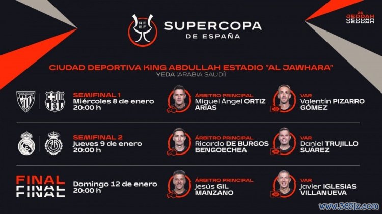 1月6日讯 西班牙足协官方更新社媒动态,公布了西班牙超等杯的裁判安排。