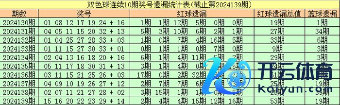 抑止双色球第2024139期,最近10期红球遗漏总值诀别为:19期、27期、33期、9期、29期、24期、61期、25期、25期、53期,上期遗漏总期数偏高。