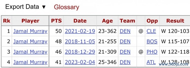 据统计,这是穆雷生计第5次砍下40+,也曾穆雷自2021年2月20日(50分)以来单场比赛砍下的最高分。
