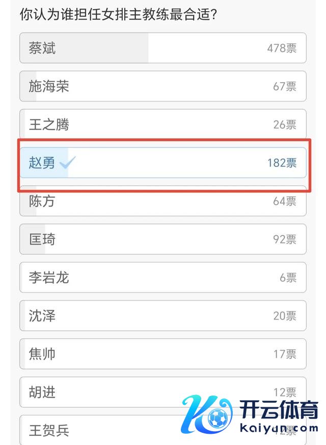 第二名是辽宁女排的主教授赵勇,获取了182票,看成多年前再次把辽宁女排带上联赛领奖台的主教授,赵勇的情怀是止境的涌现,当球队过期的工夫,他也莫得高声的呵斥球员,不得不说她是一位儒将。第别称是现任中国女排的主教授蔡斌,他获取了478票,上风还口角常的显着,看得出来各人关于蔡斌还口角常的信任,或者说是在现存的主教授内部,关于蔡斌的信任度是最高的,这倒是让人莫得念念到,毕竟蔡斌的评价似乎一直不是很高,甚而还能够听到吊问。