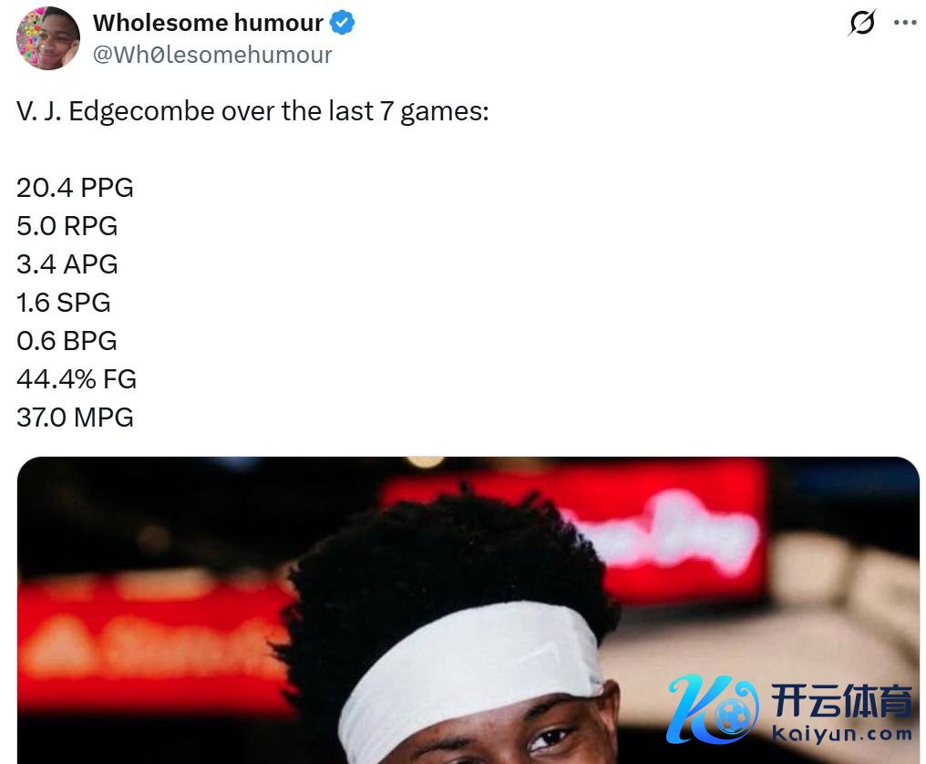 以前7场比赛,埃奇库姆场均不错拿到20.4分5板3.4助1.6断0.6帽万能数据,展现出又名超等新星应有的风姿与潜质。