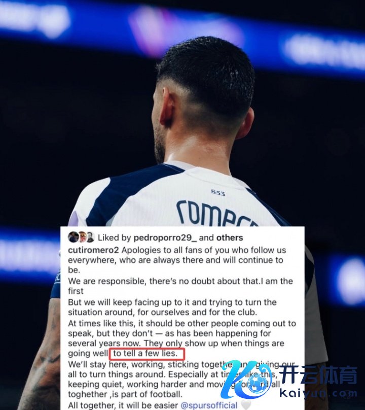 01月08日讯 英超第21轮比赛,热刺客场2-3不敌伯恩茅斯,热刺后卫罗梅罗社媒发文,其中示意本应有其他东说念主站出来发声,他们只会在顺利时出现去说一些谣喙。