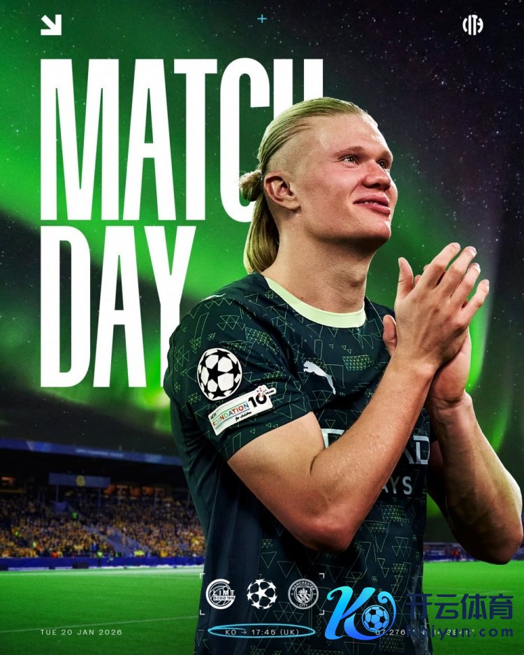 曼城官方社媒晒出为此役制作的海报,哈兰德出镜,配景为北极光下的阿斯普米拉带领场。