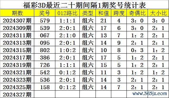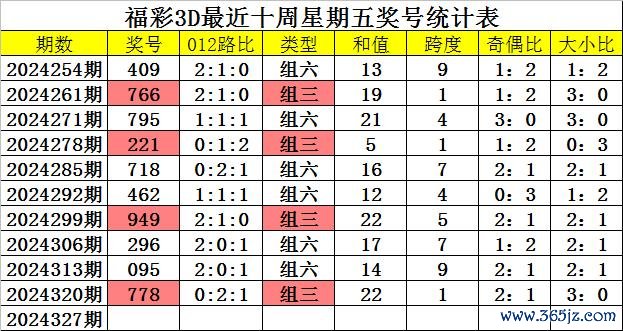 奖号类型分析:从近期周五开奖数据分析,组六号码最近十周出现6次,阐发较冷,当期轮空1周,组三开出4次,阐发相对较热,本周五展望组六号码回补。