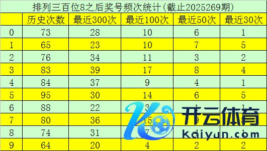 第一位杀号:上期第一位奖号为8,第一位奖号8历史上出现783次,前100次该位开出奖号8之后,下期号码0-9出现次数从高到底永诀为:号码3→17次,7→15次,5→14次,2→11次,0、1→10次,4→9次,8→7次,9→4次,6→3次。