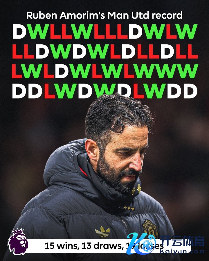 01月05日讯 曼联官方晓示,阿莫林不再担任球队主帅。抓教曼联一年期间,阿莫林共带队踢了47场英超比赛,15胜13平19负。其中曼联仅有一波连胜资格,是在本赛季第7轮到第9轮,连结征服桑德兰、利物浦、布莱顿。