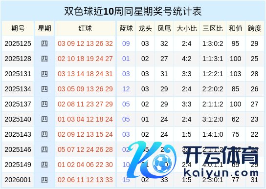 双色球近十周同星期二奖号统计表