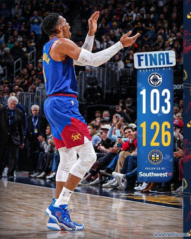 约基奇缺阵,威少19分6篮板8助攻率队取胜,小乔丹首发6投5中孝敬12分9篮板,掘金21胜15负稳居西部第四。