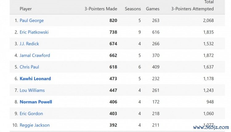 1月15日讯 当天快船官方晒挪动态,祝愿鲍威尔三分射中数来到队史第八。