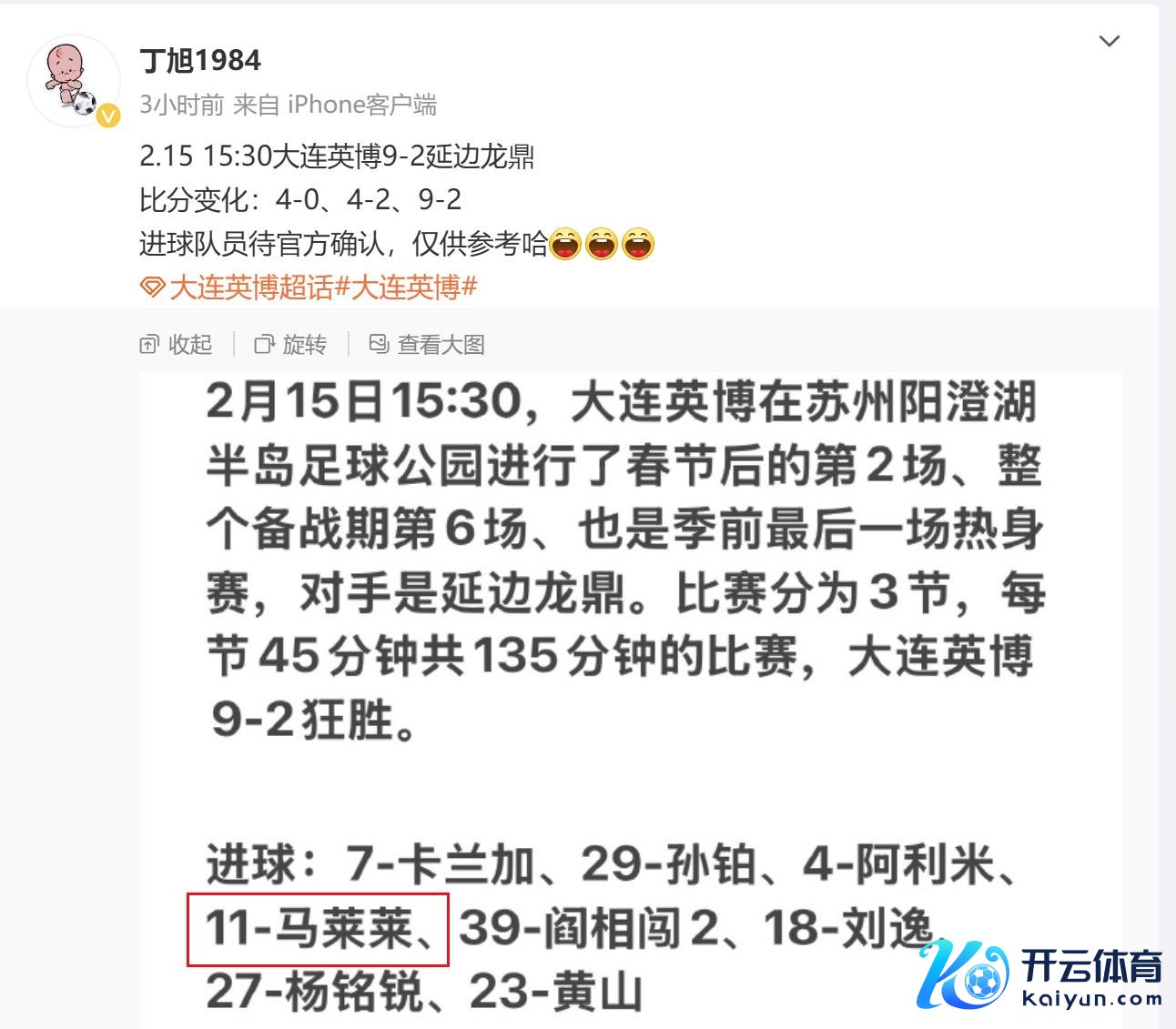 牢记在1月热身赛内部,上海海港把人阿联酋的俱乐部打成一个10比0 ,而在2月15日, 大连英博跟延边龙鼎的热身赛内部,大连是9比2大捷对方, 怎样说延边龙鼎亦然中甲的球队 ,本场比赛,大连英博主涵养上半场派出马莱莱主力气势比赛, 下半场是替补跟年青球员出场。